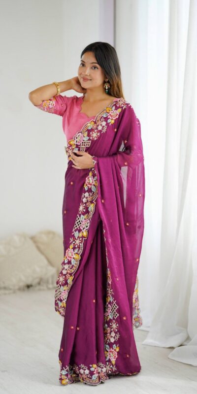 Saree Detail Saree Fabric: Premium Noha Crush Saree Work : Heavy Embroidery Threads , Sequins Work & Fancy hand Cut work In Work Blouse Fabric : Premium Mono Silk |