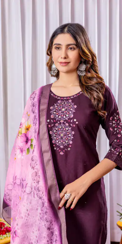 Wine Viscose Silk Thread Embroider Work Salwar Suit