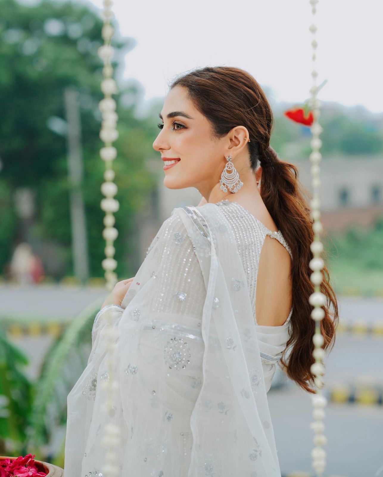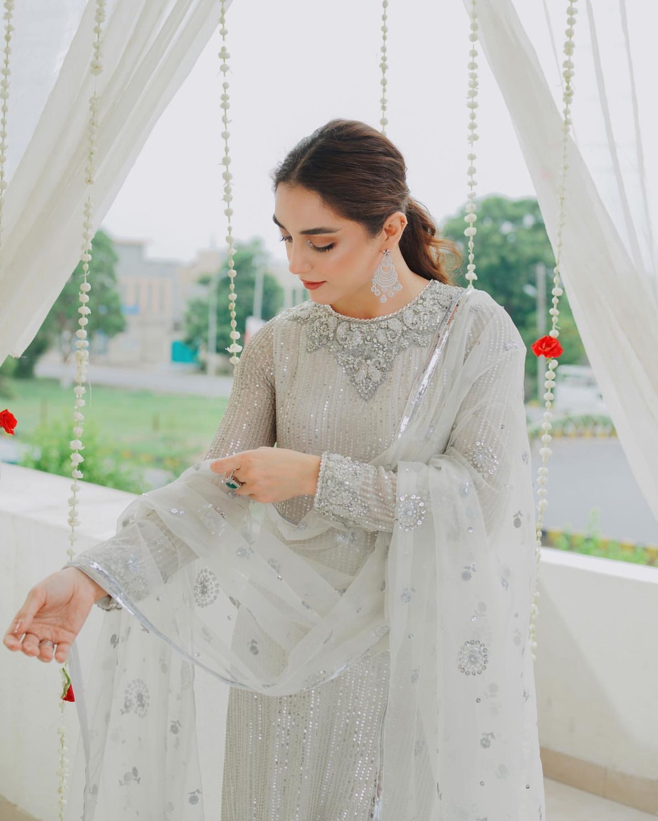 White Sequence Work Salwar Suit with Maroon Dupatta