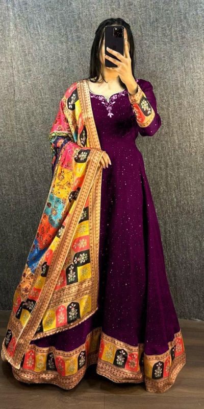 Dupatta : heavy Chinon Silk Wide Beautiful Digital Print Inner : Micro Size : Free Size Semi Stitched |