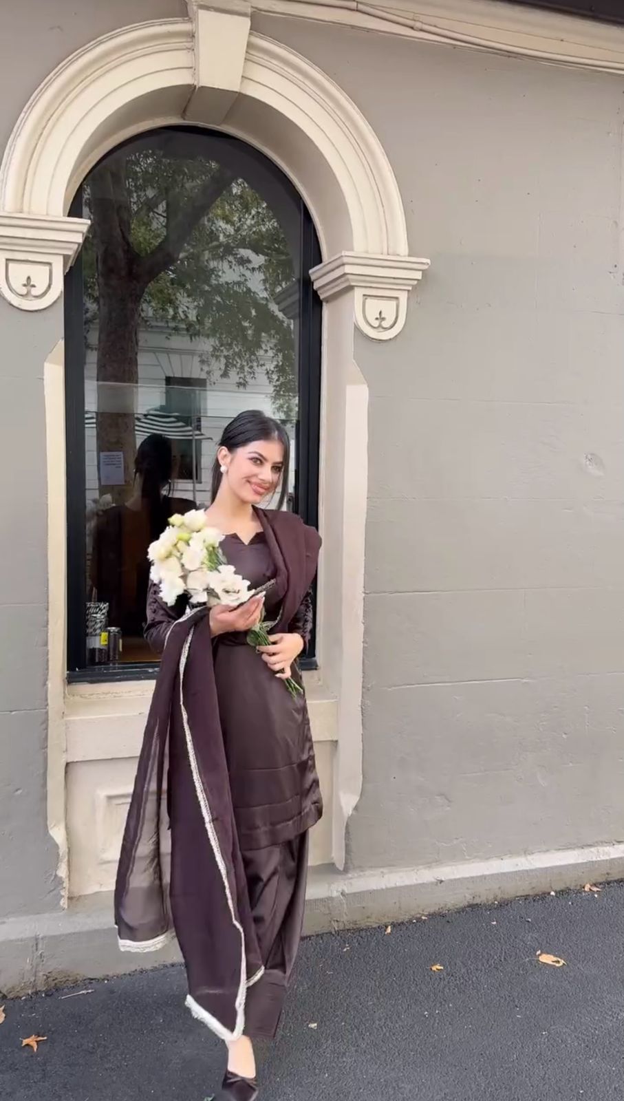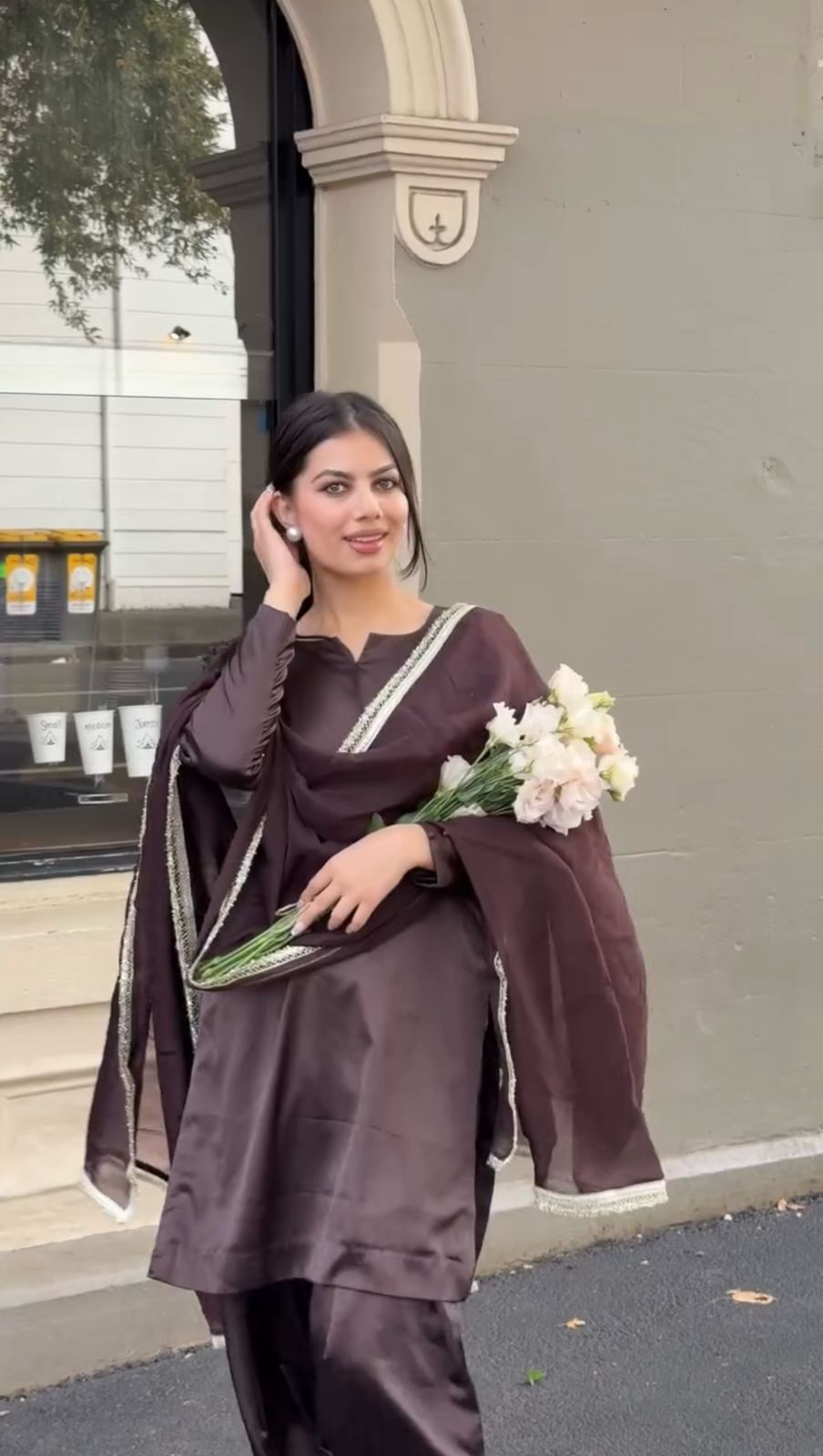 Wine Japan Satin With Full Sleeve Salwar Suit