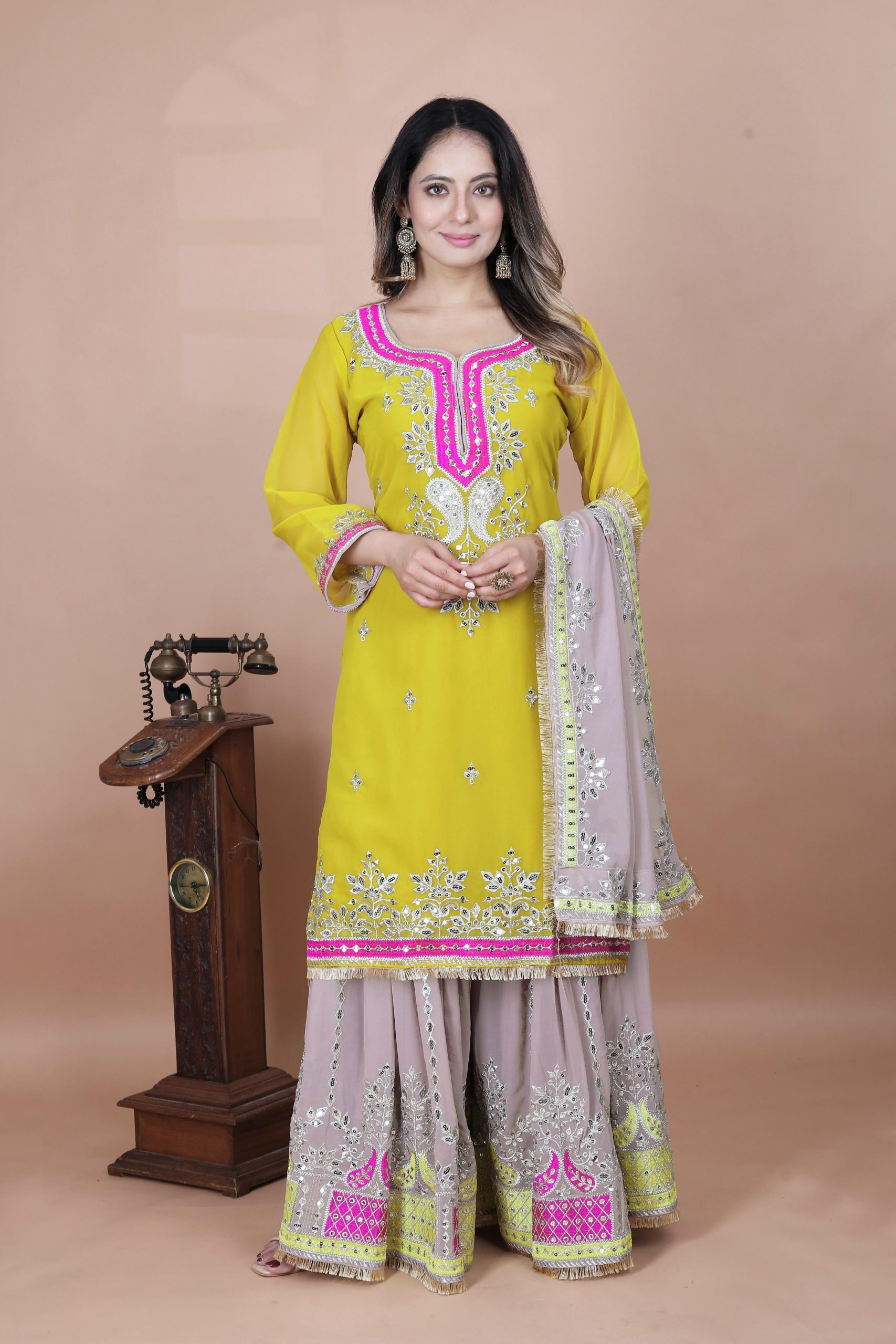 Sharara Fabrics :Heavy Faux Georgette With 5mm Embroidery Sequence Work