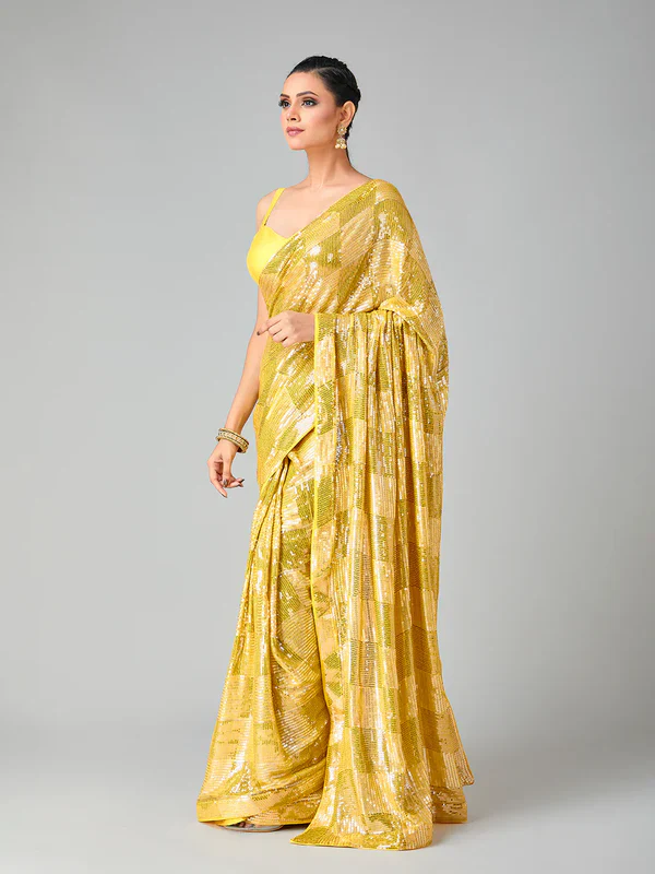 Fabric Details Full Saree Of Heavy Quality 60 Gram Georgette Heavy 3mm & 5mm Sequins Embroidery Work Done In Saree Dual Sequins Of 3mm & 5mm Sequins Work In Saree Plain Mono Silk Banglori Blouse |